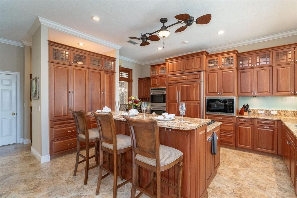 Experience refined coastal living in this exceptional 3-bedroom, 3-bath residence located in the luxury section of Boca Royale, known for its beautiful canopy tree-lined streets, tranquil setting, and oversized homesites. Designed for comfort, style, and effortless entertaining, this home offers premium finishes, thoughtful upgrades, and seamless indoor–outdoor living on an oversized lot with serene water views. Enjoy peaceful water views from the front of the home and a private, secluded water view from the lanai, creating a truly tranquil backdrop to everyday life. This property features two lanais for unmatched outdoor enjoyment. • The main lanai showcases a resort-style heated saltwater pool, heated spa, pool bath, screened grilling area, and a convenient kitchen serve-through window—ideal for gatherings of any size. • The secondary lanai offers a quiet retreat with an adjustable Aluminum roof, full screen enclosure, and paver flooring, perfect for shaded relaxation and year-round outdoor living. Inside, architectural details include tray ceilings, chair molding, transom windows, and four sets of sliding glass doors that fill the home with natural light. Peace of mind comes with hurricane impact-rated windows and shutters, Hunter Douglas window treatments, a whole-house generator, two A/C systems (including a newer 4-ton split), two hot water tanks, a water treatment system, and fully automated irrigation. The chef’s kitchen is designed for both function and style, offering granite countertops, lighted upper and under-cabinetry, and an expansive butler pantry with an icemaker, wine storage, and dedicated prep and bar areas. Premium appliances include a WOLF microwave, 5-burner cooktop, double oven, Miele dishwasher and a Sub-Zero refrigerator. The split floor plan provides exceptional flexibility. The luxury primary suite features a spa-inspired bath, while the third bedroom could also be used as an in-law suite with its own private entrance is ideal for guests or multigenerational living. An oversized 22' x 26' garage with epoxy flooring and workshop space completes the home. Set on a tranquil oversized lot with peaceful water views in both the front and back, this residence delivers an elevated lifestyle within Boca Royale Golf & Country Club. Community amenities include multiple dining venues, a heated pool, fitness center, social activities, and optional golf and racquet memberships offering tennis, pickleball, and an 18-hole championship course. Upcoming gated access to Wellen Park will provide convenient connectivity to restaurants, shopping, and the ballpark. Gulf Coast beaches are only minutes away. This home embodies luxury, serenity, and coastal living at its finest.